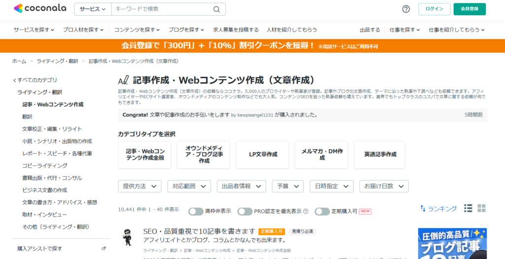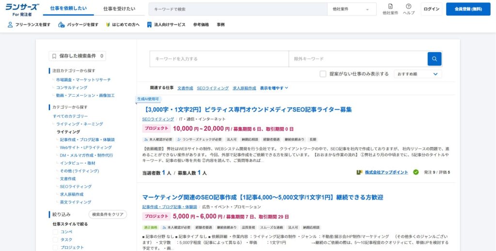 案件数が多く、初心者ライターでも参入しやすいのが特徴といえます。